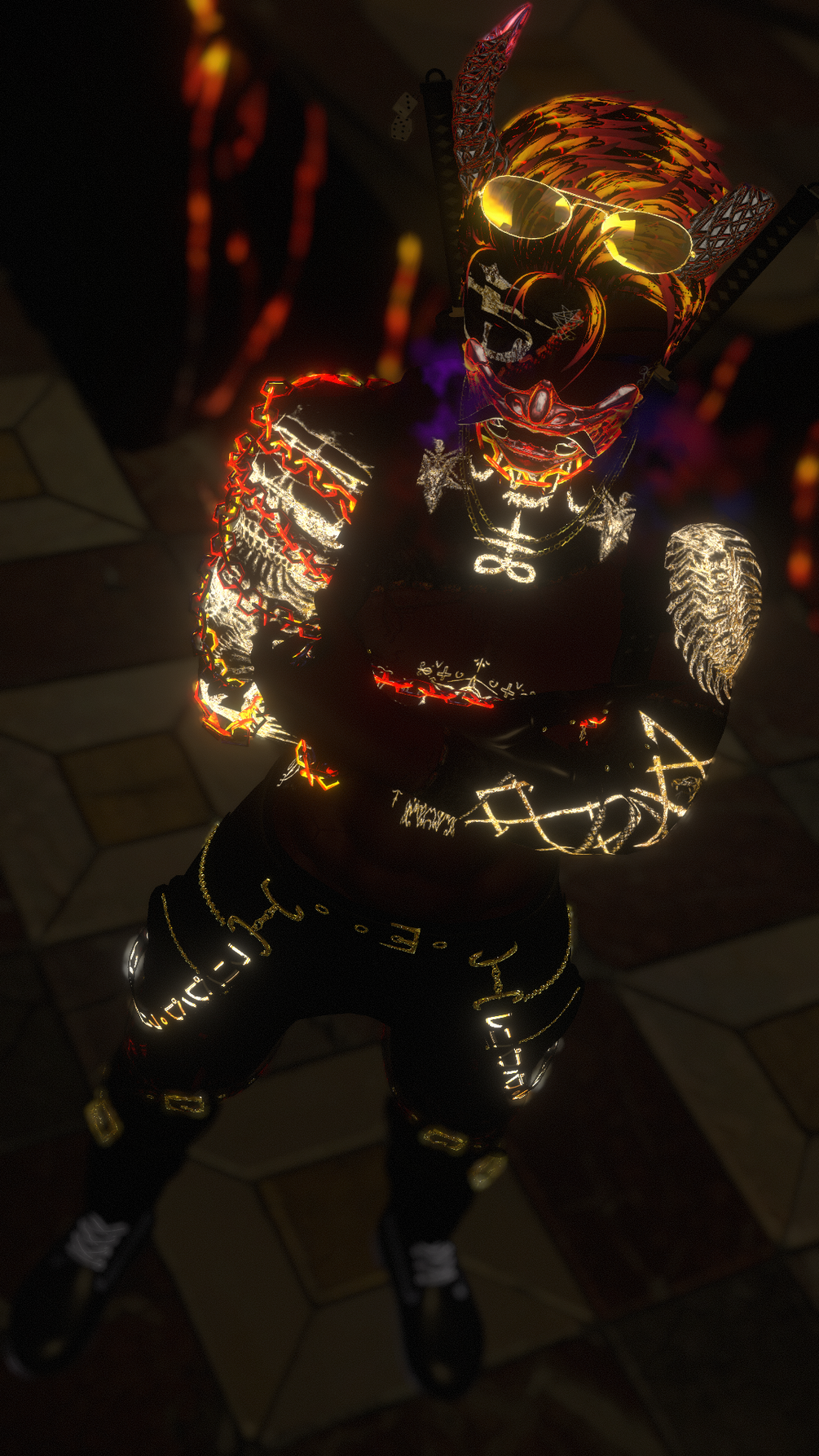 Mask: https://sketchfab.com/3d-models/japanese-mask-6b6e12151d5d4421b5c41500815c08a9 (small edits to mesh, dont reuse get it from the original creator!)
